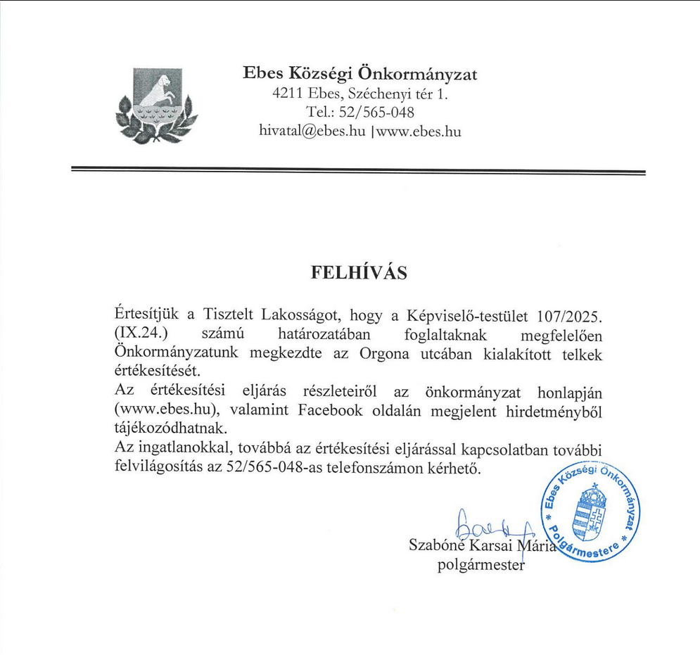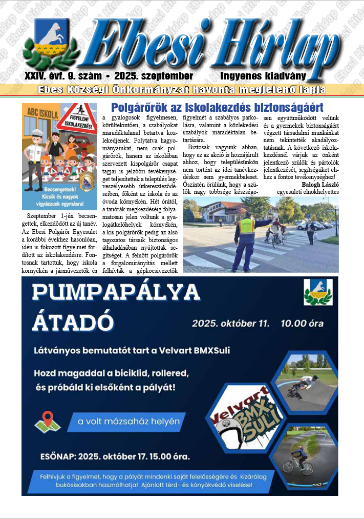 Megjelent az Ebesi Hírlap 2025. szeptemberi száma, amely letölthető a következő linkről: