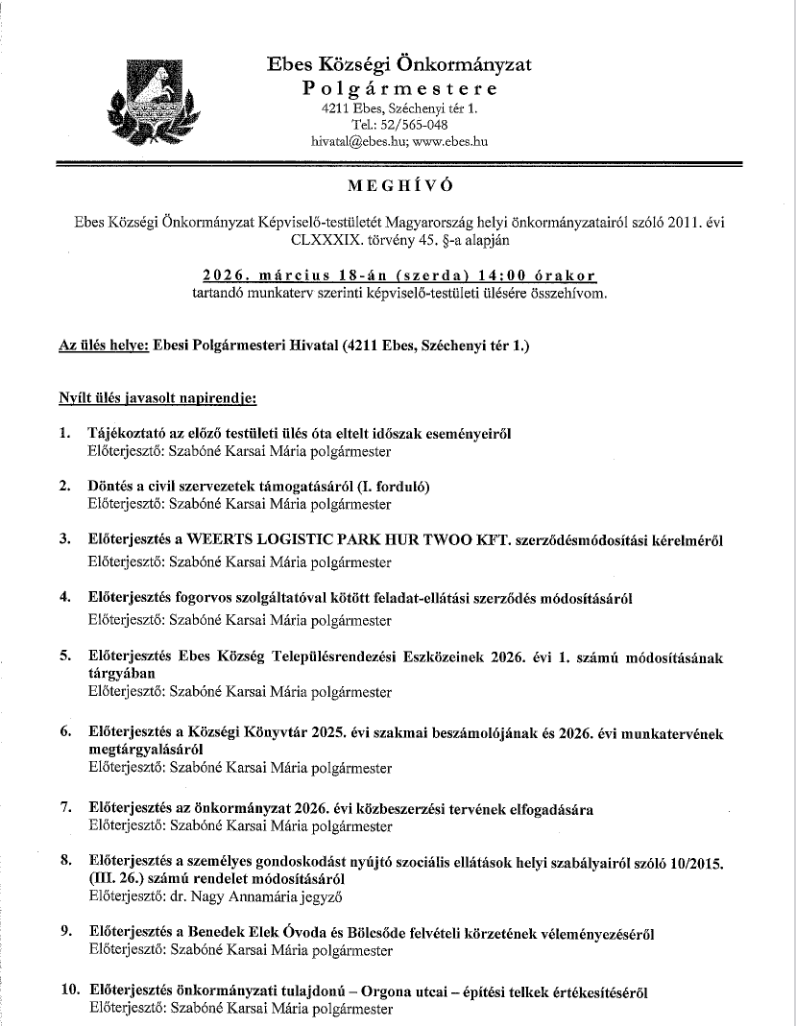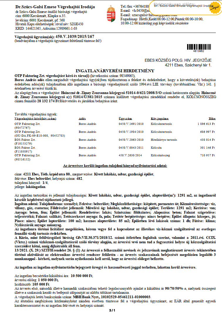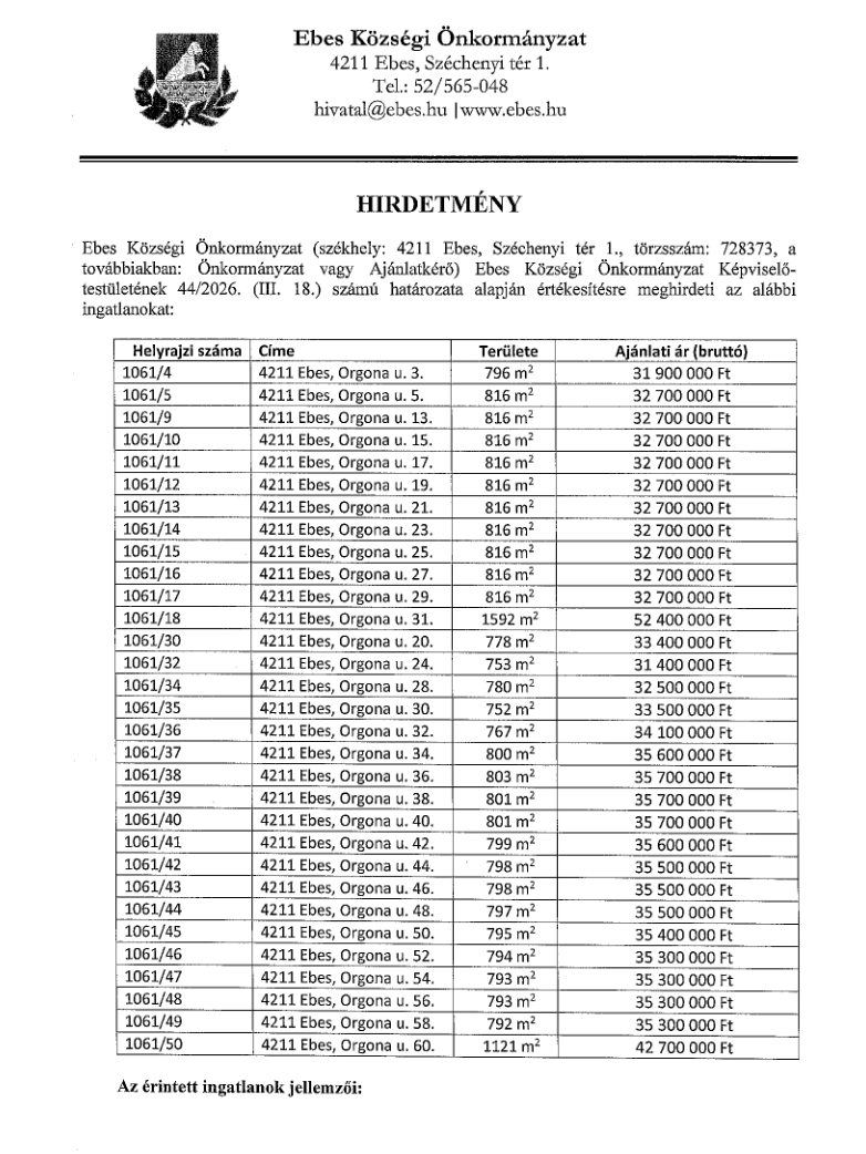 (4211 Ebes, Rákóczi u. 7–9.)